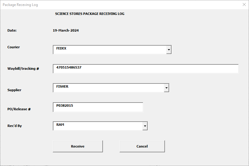 At my workplace before I came onboard, they were tracking incoming packages on paper. They had to write down items such as date, courier, waybill/tracking number, supplier, and purchase order number. Keeping these sheets around and trying to look for any particular delivery at a later date was a nightmare.